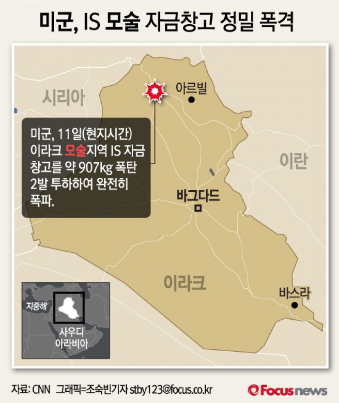 (서울=포커스뉴스) 미 CNN은 11일(현지시간) 미군이 IS 자금 수백만 달러가 보관돼있는 이라크 모술 지역의 현금 창고를 폭격했다고 보도했다.