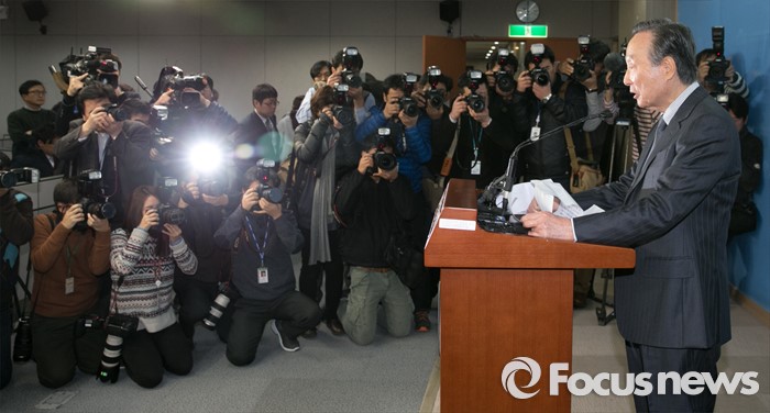 (서울=포커스뉴스) 권노갑 더불어민주당 상임고문이 12일 오전 서울 여의도 국회 정론관에서 탈당 기자회견을 하고 있다.