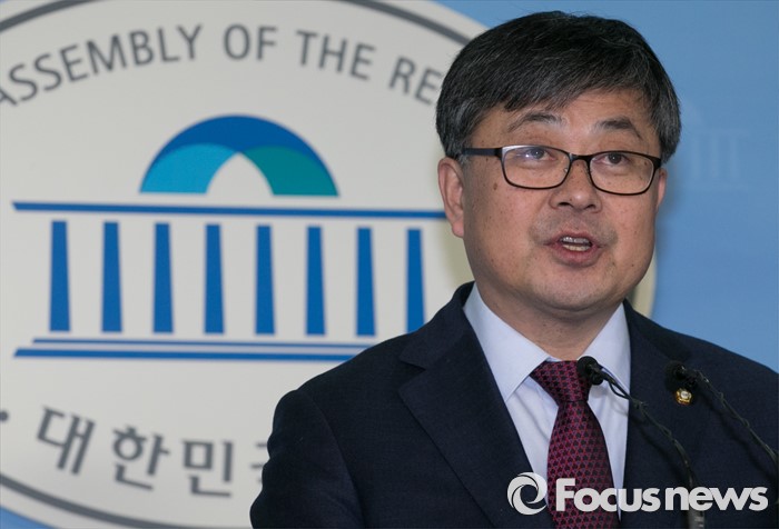 (서울=포커스뉴스) 최원식 더불어민주당 의원이 12일 오전 서울 여의도 국회 정론관에서 탈당 및 국민의당 합류 기자회견을 하고 있다.