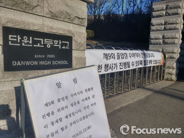 단원고는 학부모들 요청으로 이번 졸업식을 비공개로 진행하기로 결정하고 사전에 초청장과 허가를 받은 졸업생 가족, 친척 등만 학교에 들어갈 수 있었다.
