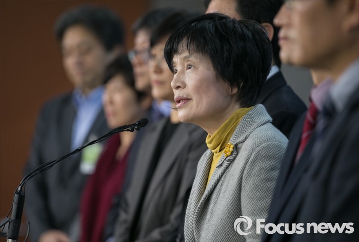 (서울=포커스뉴스) 12일 오전 서울 여의도 국회 정론관에서 조은 더불어민주당 선출직공직자평가위원장과 위원들이 19대 국회의원 평가 종료 기자회견을 하고 있다.