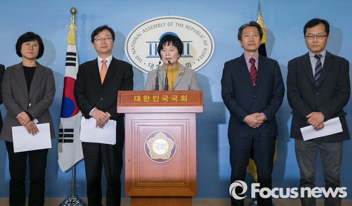 (서울=포커스뉴스) 12일 오전 서울 여의도 국회 정론관에서 조은 더불어민주당 선출직공직자평가위원장과 위원들이 19대 국회의원 평가 종료 기자회견을 하고 있다.