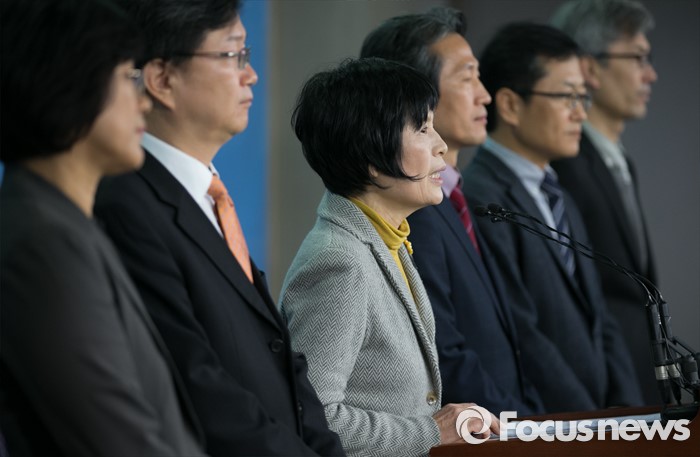 (서울=포커스뉴스) 12일 오전 서울 여의도 국회 정론관에서 조은 더불어민주당 선출직공직자평가위원장과 위원들이 19대 국회의원 평가 종료 기자회견을 하고 있다.