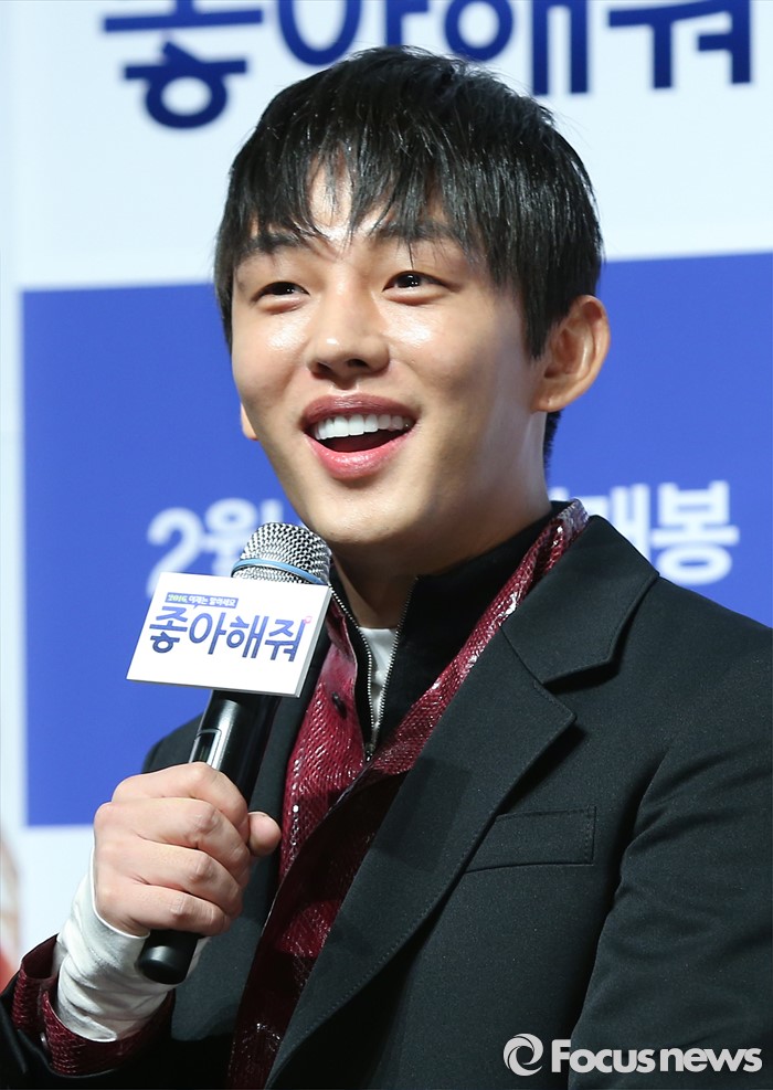 (서울=포커스뉴스) 12일 오전 서울 강남구 압구정 CGV에서 열린 영화 '좋아해줘' 제작보고회에 참석한 배우 유아인이 인사말을 하고 있다.