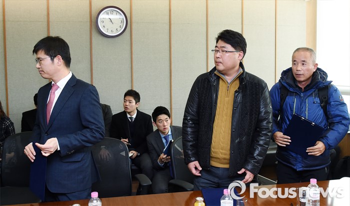(서울=포커스뉴스) 12일 오전 서울 서대문구 충정로 법무법인 지평 회의실에서 열린 '삼성전자 반도체 등 사업장에서의 백혈병 등 질환 발병과 관련한 문제 해결을 위한 조정위원회'에서 조정 주체 교섭단 대표자들이 최종 합의서에 서명한 뒤 악수를 하고 자리를 나서고 있다.