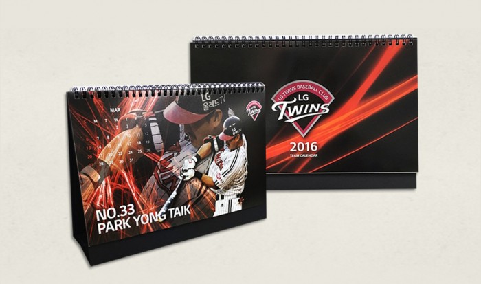 판매가격은 1만1천원이다. 12일 오전10시부터 LG트윈스 온라인쇼핑몰(www.lgtwinsshop.com)을 통해 구입할 수 있다.LG트윈스가 2016년 탁상용 달력을 출시한다고 12일 밝혔다. 사진은 달력 모습.<사진제공=LG트윈스>