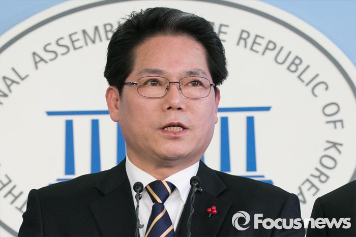 (서울=포커스뉴스) 임홍채 더불어민주당 전국당원협의회 회장을 비롯한 회원들이 12일 오후 서울 여의도 국회 정론관에서 탈당 기자회견을 하고 있다.