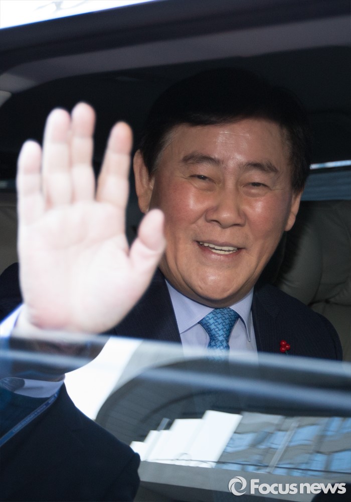 | △ 손인사 하는 최경환 |