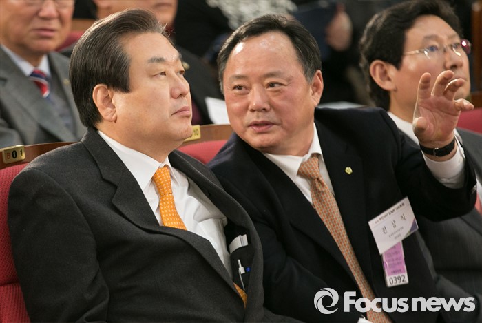 (서울=포커스뉴스) 12일 오후 서울 여의도 국회 의원회관에서 열린 주민자치 실질화 대토론회에 참석한 김무성(왼쪽) 새누리당 대표와 전상직 한국주민자치중앙회 대표회장이 대화하고 있다.