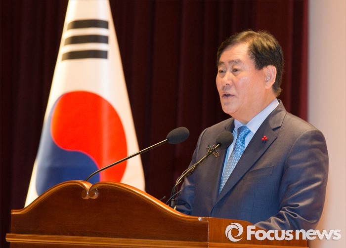 (세종=포커스뉴스) 최경환 경제부총리 겸 기획재정부장관이 12일 오후 세종시 정부세종청사 대강당에서 열린 이임식에서 이임사를 하고 있다.