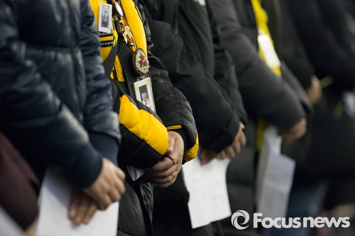 (안산=포커스뉴스) 12일 오후 경기도 안산시 세월호 사고 희생자 정부 합동분향소에서 유가족 및 시민들이 416 추모식을 하고 있다.