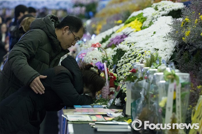 (안산=포커스뉴스) 12일 오후 경기도 안산시 세월호 사고 희생자 정부 합동분향소에서 유가족 및 시민들이 416 추모식을 마치고 분향을 하고 있다.