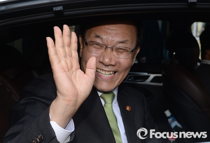 (세종=포커스뉴스) 황우여 사회부총리 겸 교육부장관이 12일 오후 세종시 정부세종청사 교육부 대회의실에서 열린 이임식을 마치고 손인사를 하고 있다.