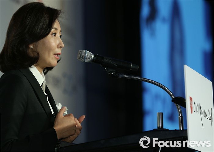 (서울=포커스뉴스) 12일 오후 서울 강남구 그랜드 인터컨티넨탈 호텔에서 한국이미지커뮤니케이션연구원(CICI) 주최로 열린 '12회 한국이미지상 시상식'에 참석한 새누리당 나경원 의원이 축사를 하고 있다.