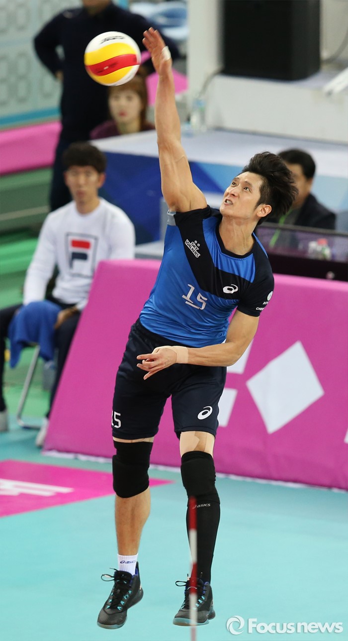 (인천=포커스뉴스) 12일 인천 계양체육관에서 열린 '2015-2016NH농협 V-리그' 남자부 대한항공-현대캐피탈 경기에서 현대캐피탈 문성민이 강력한 스파이크 서브를 넣고 있다.