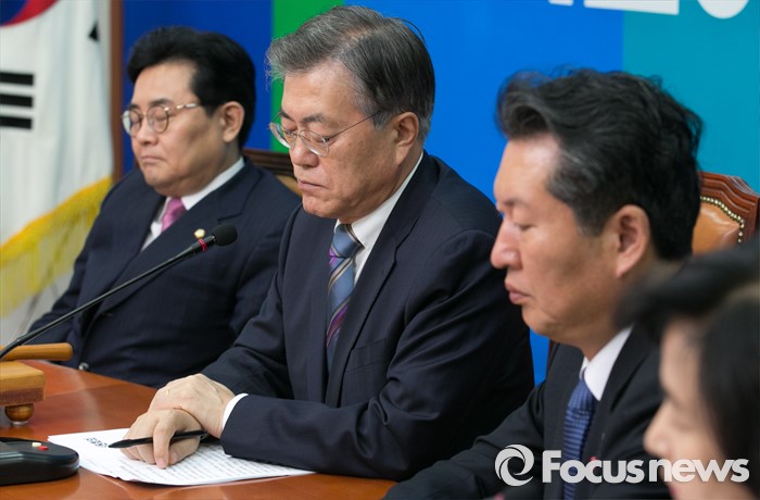 (서울=포커스뉴스) 문재인 더불어민주당 대표와 최고위원들이 13일 오전 서울 여의도 국회에서 열린 최고위원회의에 참석해 생각에 잠겨 있다.