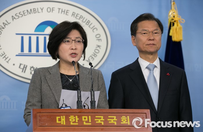 (서울=포커스뉴스) 13일 오전 서울 여의도 국회 정론관에서 천정배(오른쪽) 국민회의 창당준비위원장과 박주현 정책위원장이 정책발표 기자회견을 하고 있다.