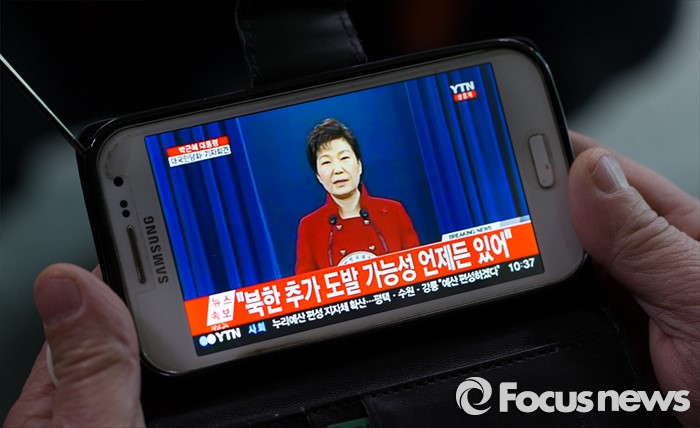 (서울=포커스뉴스) 13일 오전 서울역 대합실에서 한 시민이 DMB를 이용해 박근혜 대통령의 대국민 담화 및 기자회견을 시청하고 있다.