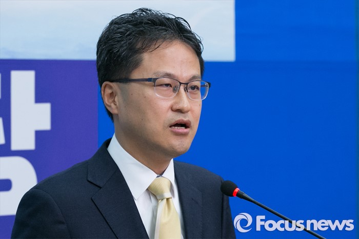 (서울=포커스뉴스) 재정부 국고국 과장을 역임한 국가재정 전문가 김정우 세종대 교수가 13일 오전 서울 여의도 국회 더불어민주당 대표회의실에서 입당 기자회견을 하고 있다. 김 교수의 부친은 김철배 더민주 강원도당 고문으로 12대 총선부터 15대 총선까지 5번(보선 1회 포함)을 철원, 화천, 양구 지역에서 범민주당의 이름으로 출마해, 5번 내리 낙선했다.