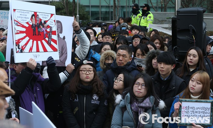 | △ 일본정부 공식 사과 촉구하는 수요시위 참가자들 |