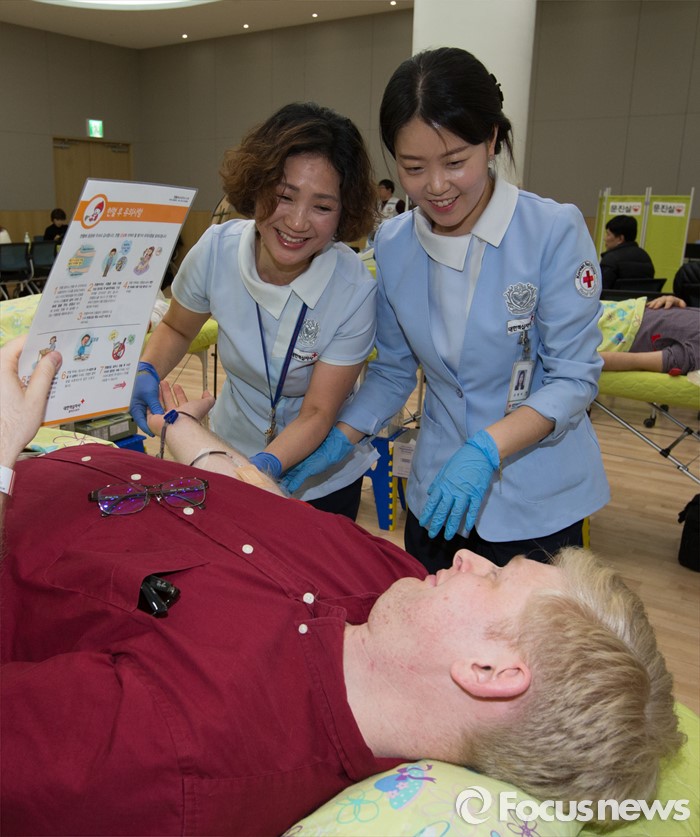 | △ 헌혈에 동참하는 외국인 공무원 |