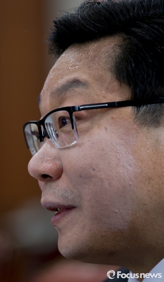 | △ 땀 흘리는 주형환 후보자 |