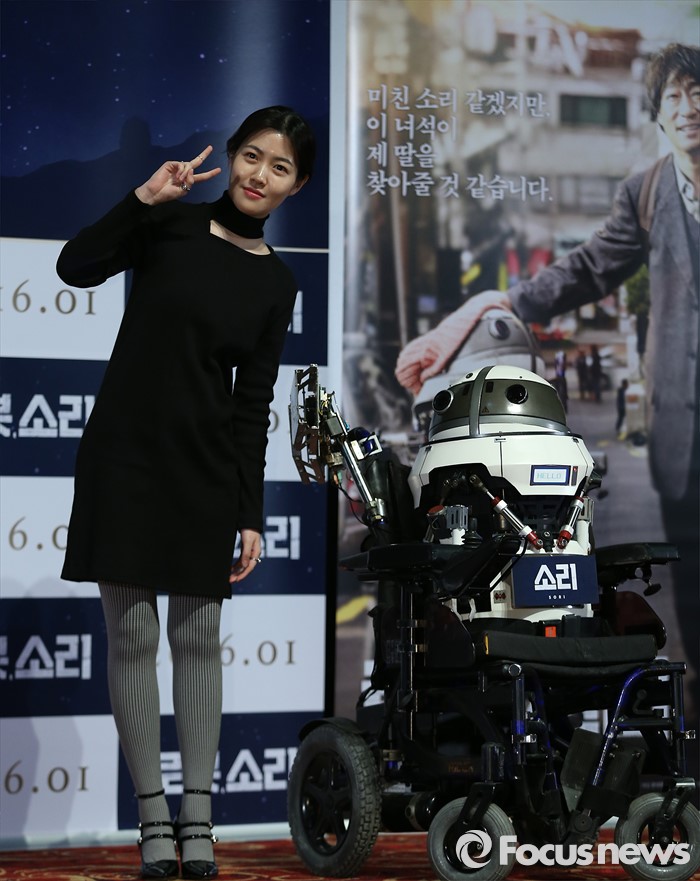 (서울=포커스뉴스) 13일 오후 서울 광진구 롯데시네마 건대입구점에서 열린 영화 '로봇, 소리' 언론시사회에 참석한 배우 심은경이 영화에 출연한 로봇 소리와 함께 포토타임을 갖고 있다.