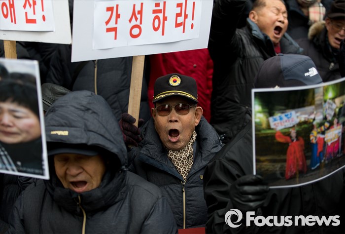 (서울=포커스뉴스) 13일 오후 서울 종로구 구 일본대사관 앞에서 어버이연합이 한국정신대문제대책협의회를 비난하는 기자회견을 하고 있다.