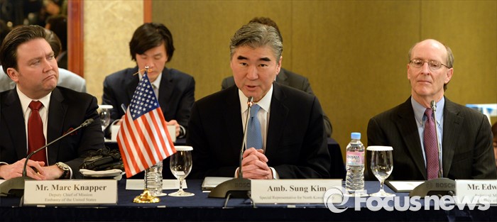 (서울=포커스뉴스) 13일 오후 서울 중구 롯데호텔에서 열린 '한미일 북핵 6자수석 회동'에서 성 김 미국 국무부 대북정책특별대표가 모두발언을 하고 있다.
