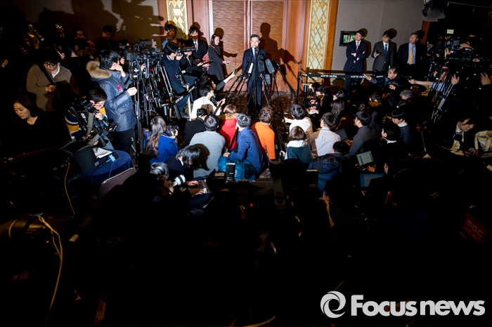 (서울=포커스뉴스) 황준국 외교부 한반도평화교섭본부장이 13일 오후 서울 중구 롯데호텔에서 열린 '한미일 6자회담 수석대표 긴급회동'에 자리해 북한 4차 핵실험 강행 관련 대북제재 방안 논의를 마친 뒤 입장발표를 하고 있다.