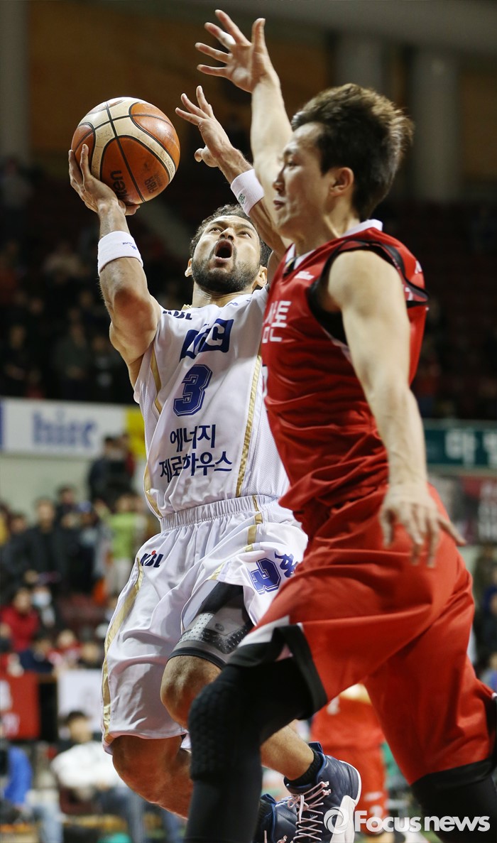 (안양=포커스뉴스) 13일 안양실내체육관에서 열린 2015-2016 프로농구 KGC-KCC 경기에서 87-87 동점 상황에서 가로채기를 한 KCC 전태풍이 KGC 박찬희의 마크를 받으며 골밑슛을 시도하고 있다.
