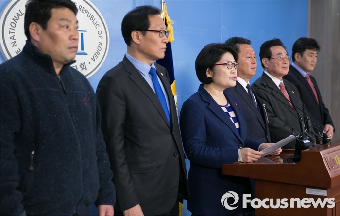 (서울=포커스뉴스) 안귀옥 더불어민주당 인천 남구을 지역위원장과 20대 총선 인천 남구갑 총선 출마를 준비 중인 김충래 변호사 등이 14일 오전 서울 여의도 국회 정론관에서 탈당 및 국민의당 합류 기자회견을 하고 있다.