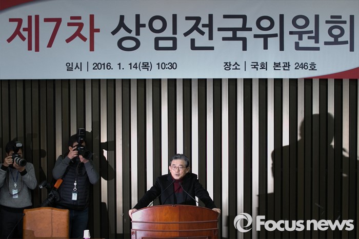 (서울=포커스뉴스) 이한구 새누리당 전국위원회 의장이 14일 오전 서울 여의도 국회에서 열린 제7차 상임전국위원회에 참석해 인사말을 하고 있다.