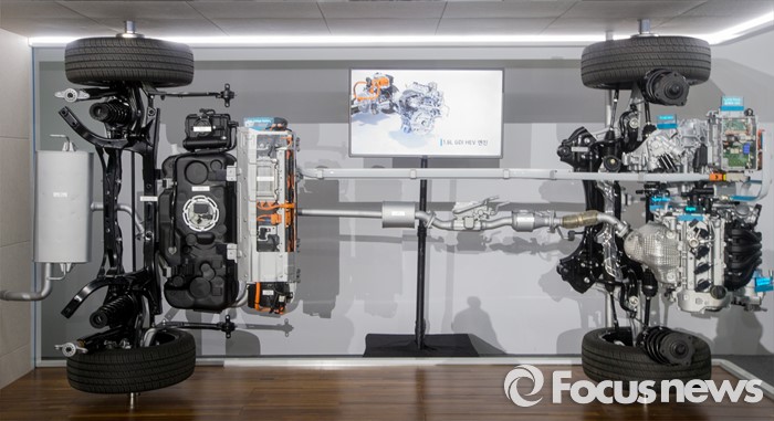 (서울=포커스뉴스) 현대자동차가 14일 오전 서울 중구 동대문디자인플라자에서 하이브리드 자동차 '아이오닉'을 선보였다. 이날 행사장에 전시된 아이오닉의 파워트레인.