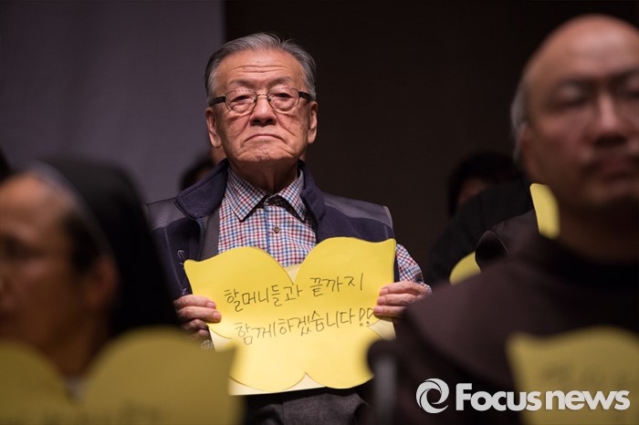 (서울=포커스뉴스) 한국정신대문제대책협의회와 시민사회단체가 14일 오후 서울 중구 프레스센터에서 시민사회단체와 학생, 예술 단체 등 사회각계각층이 참여하는 '한일 일본군 위안부 합의 무효와 정의로운 해결을 위한 전국행동' 발족 기자회견을 열고 있다.