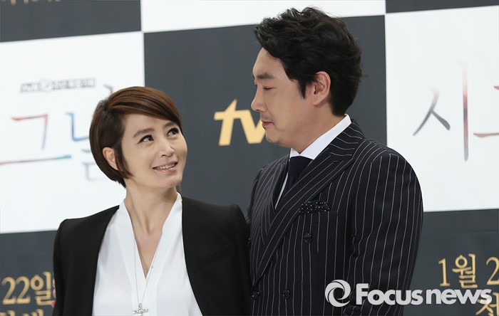 (서울=포커스뉴스) 14일 오후 서울 영등포구 타임스퀘어 아모리스홀에서 열린 tvN 10주년 특별기획 '시그널' 제작발표회에 참석한 배우 김혜수와 조진웅이 포토타임을 갖고 있다.