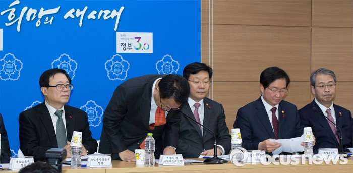 (세종=포커스뉴스) 유일호 경제부총리 겸 기획재정부장관이 14일 오후 세종시 정부세종청사 기획재정부 브리핑룸에서 내수·수출의 균형을 통한 경제활성화 관계부처 합동브리핑에 앞서 인사를 하고 있다.