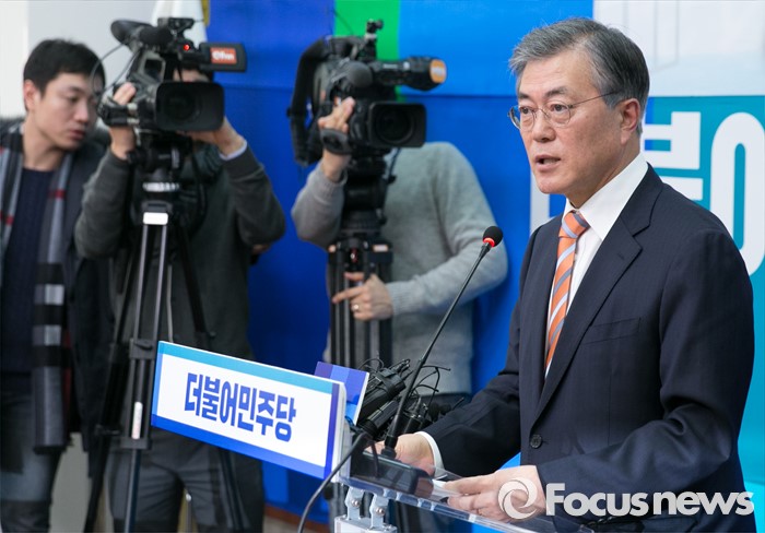 (서울=포커스뉴스) 문재인 더불어민주당 대표가 14일 오후 서울 여의도 국회에서 지난 2012년 대선 당시 박근혜 대통령의 경제민주화 공약을 만든 김종인 전 의원을 조기선대위원장으로 영입한 것과 관련 기자간담회를 하고 있다.