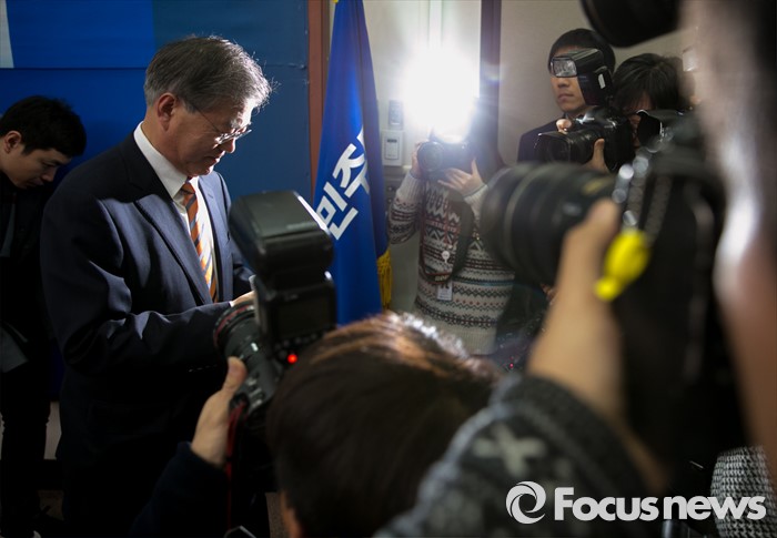 (서울=포커스뉴스) 문재인 더불어민주당 대표가 14일 오후 서울 여의도 국회에서 지난 2012년 대선 당시 박근혜 대통령의 경제민주화 공약을 만든 김종인 전 의원을 조기선대위원장으로 영입한 것과 관련 기자간담회를 마친 뒤 퇴장하고 있다.