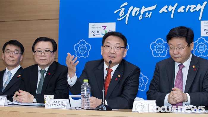 왼쪽부터 강호인 국토교통부장관, 이동필 농림축산식품부장관, 유일호 부총리, 주형환 산업통상자원부장관.