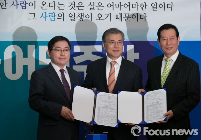 문재인 더민주 대표는 이날 오전 국회에서 열린 두 사람의 입당 기자회견에서 "오늘 오신 두 분은 합리적 보수"라고 하정열 원장과 박희성 전 지원장을 소개했다.