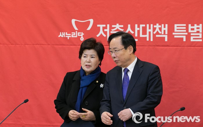 (서울=포커스뉴스) 이주영(오른쪽) 새누리당 저출산대책특위 위원장과 박윤옥 간사가 15일 오전 서울 여의도 국회 귀빈식당에서 열린 사교육비 절감방안 논의를 위한 당정협의에 참석해 대화하고 있다.