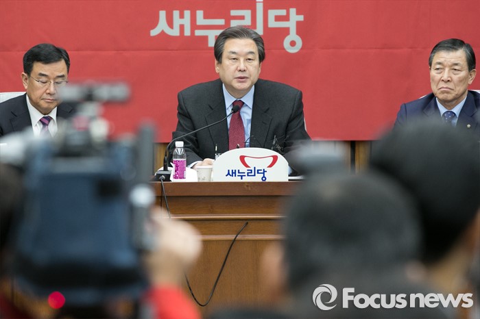 (서울=포커스뉴스) 김무성(가운데) 새누리당 대표가 15일 오전 서울 여의도 국회에서 열린 주요당직자회의에 참석해 모두발언하고 있다.