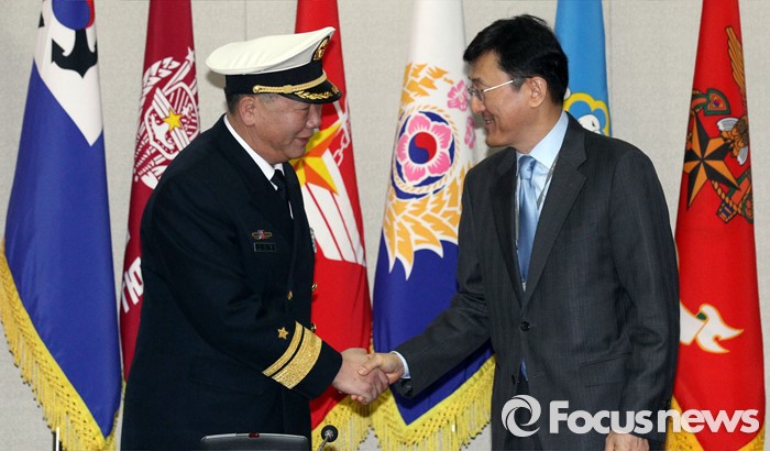 (서울=포커스뉴스) 한국군과 중국군 당국이 북한의 4차 핵실험 도발에 대한 대응 방안을 논의하기 위해 15일 오전 서울 국방부에서 '제15차 한·중 국방정책실무회의'를 개최, 윤순구 국방부 국제정책관과 관요페이 중국 국방부 외사판공실 주임이 악수를 하고 있다.