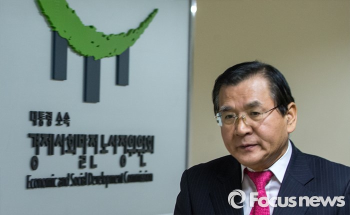 (서울=포커스뉴스) 15일 오전 서울 종로구 정부서울청사에서 노사정위원회 주최로 열린 '노동시장 구조개선 특별위원회 조찬간담회'에 참석한 김대환 경제사회발전노사정위원장이 잠시 자리를 비우고 있다.