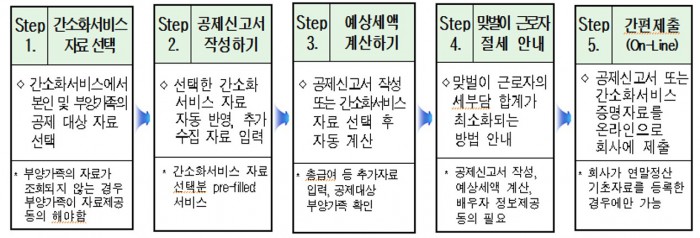 (서울=포커스뉴스) 근로자가 연말정산을 위해 회사에 필수적으로 제출해야하는 공제신고서는 오는 19일 개통하는 '편리한 연말정산' 서비스를 통해 홈택스에서 자동으로 작성할 수 있다.