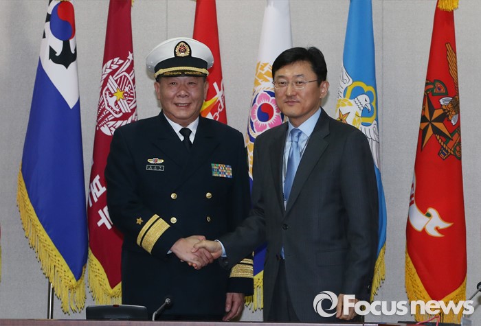 (서울=포커스뉴스) 한국군과 중국군 당국이 북한의 4차 핵실험 도발에 대한 대응 방안을 논의하기 위해 15일 오전 서울 국방부에서 '제15차 한·중 국방정책실무회의'를 개최, 윤순구 국방부 국제정책관과 관요페이 중국 국방부 외사판공실 주임이 악수를 하고 있다.