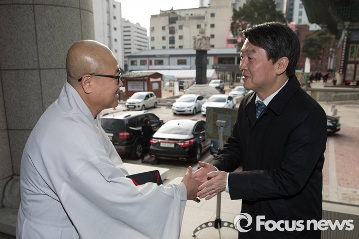(서울=포커뉴스) 안철수 의원이 15일 오전 서울 종로구 조계사 한국불교역사문화기념관에서 자승 조계종 총무원장을 만나기 위해 차에서 내려 사서실장인 심경 스님과 인사를 나누고 있다.