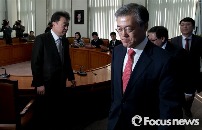 (서울=포커스뉴스) 문재인 더불어민주당 대표가 15일 오후 서울 여의도 국회에서 열린 유영민 전 포스코 경영연구소 사장 인재영입 기자회견에 참석한 뒤 퇴장하고 있다.