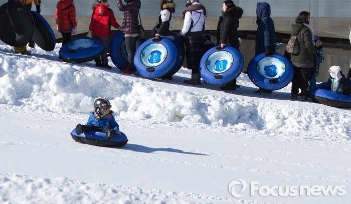 (평창=포커스뉴스) 15일 오후 강원도 평창군 횡계리 일대에서 열린 대관령 눈꽃축제를 찾은 한 어린이가 눈썰매를 타며 즐거운 시간을 보내고 있다. 이번 행사는 오는 15일 시작해 내달 10일 강원 평창군 횡계리 일대에서 열린다.